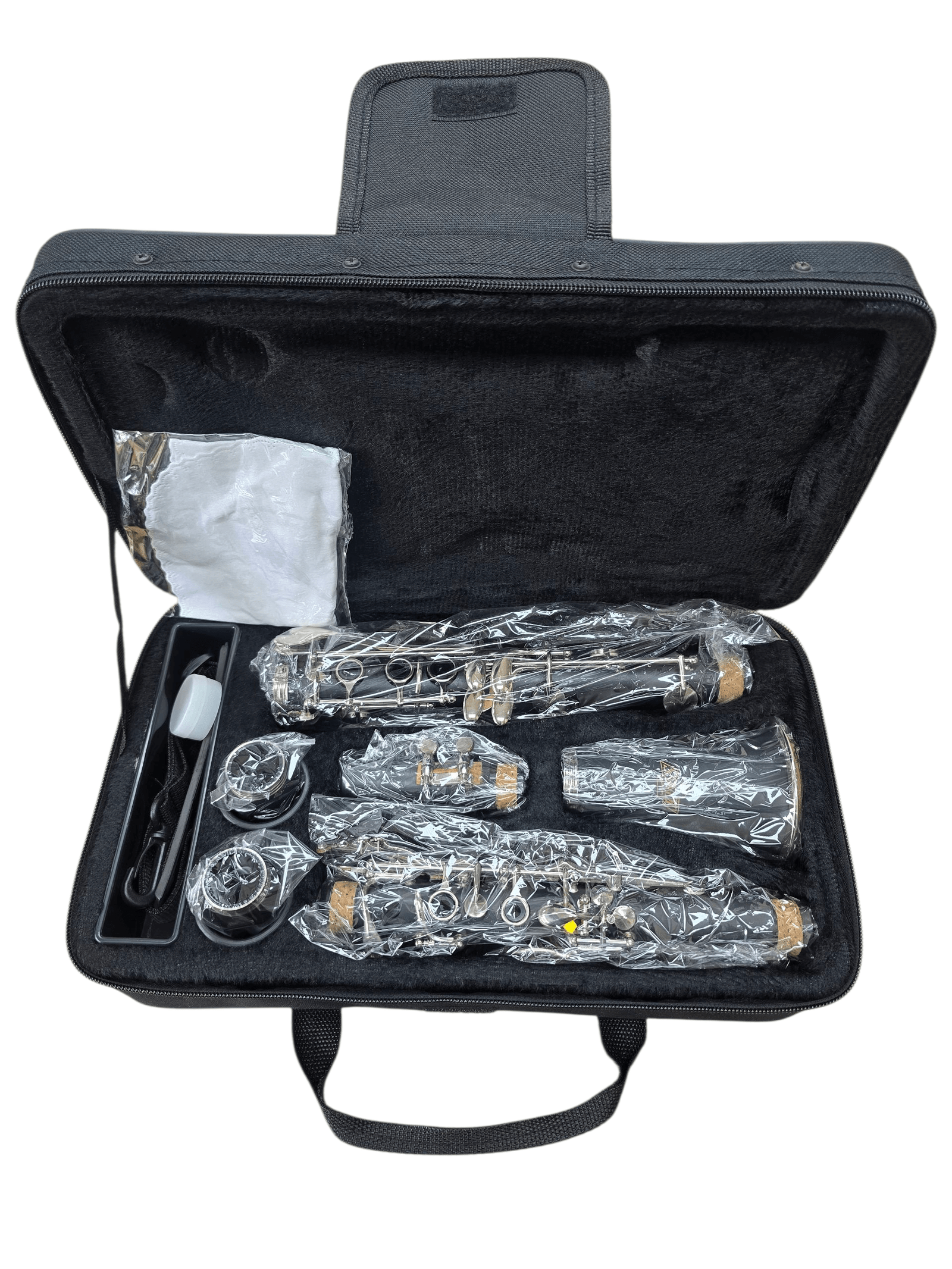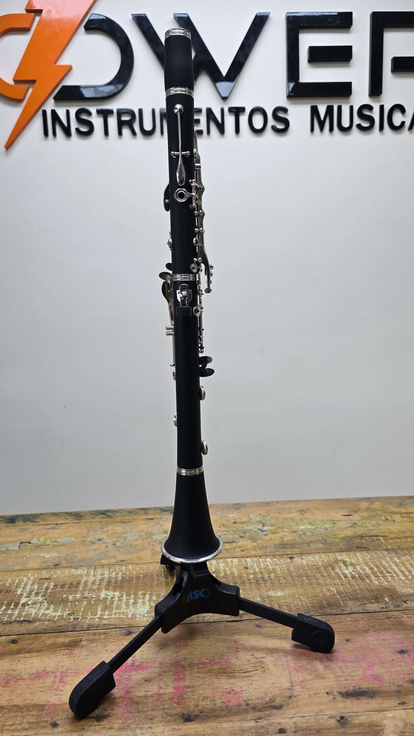 Este modelo é um clarinete de estudante padrão.